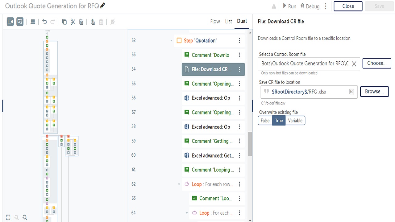 This bot is designed to work for any user by simply plugging the bot into an existing task or new task. The objective of the bot is to automate the process of creating a Quotation for a customer based on the RFQ (Request For Quote). Customers can send the RFQ in Excel format attached as Folder – “Input format” to the Outlook Quote Generation For RFQ (Request For Quote) Bot. The bot will download the attachments with the subject line as "Request for Quote" process the attachments based on the file extension to create Quotation. Send an Email with the generated Quotation file in .xlsx format to the customer. This bot is not going to work for different templates of "Request For Quotation." This bot will work only for fixed template in (RFQ.xlsx) the control room file which is attached to the bot in the Docs folder
