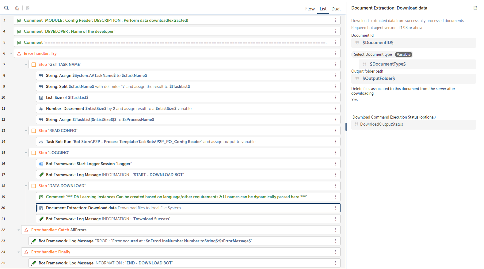 This process template helps developers to automate the P2P business processes like Invoice Processing, Order Acknowledgement, Sales Order Processing, etc., Based on your use case, the logics can be customized.
