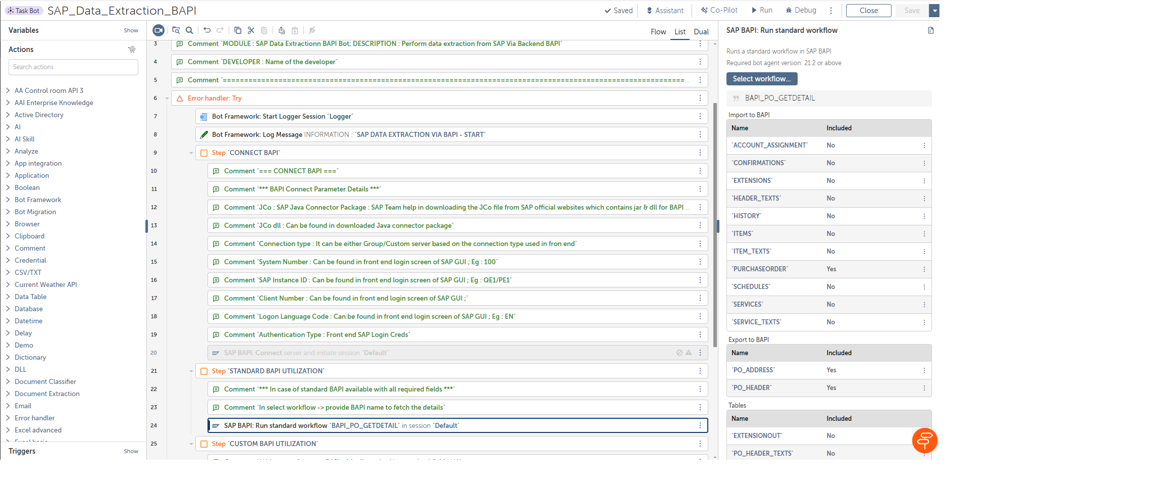 As a part of this template, bot will get an input pdf (can be an Invoice/Purchase Order/Sales Order/etc.,) and read the required information from the document and navigates to SAP to extract Po related information.