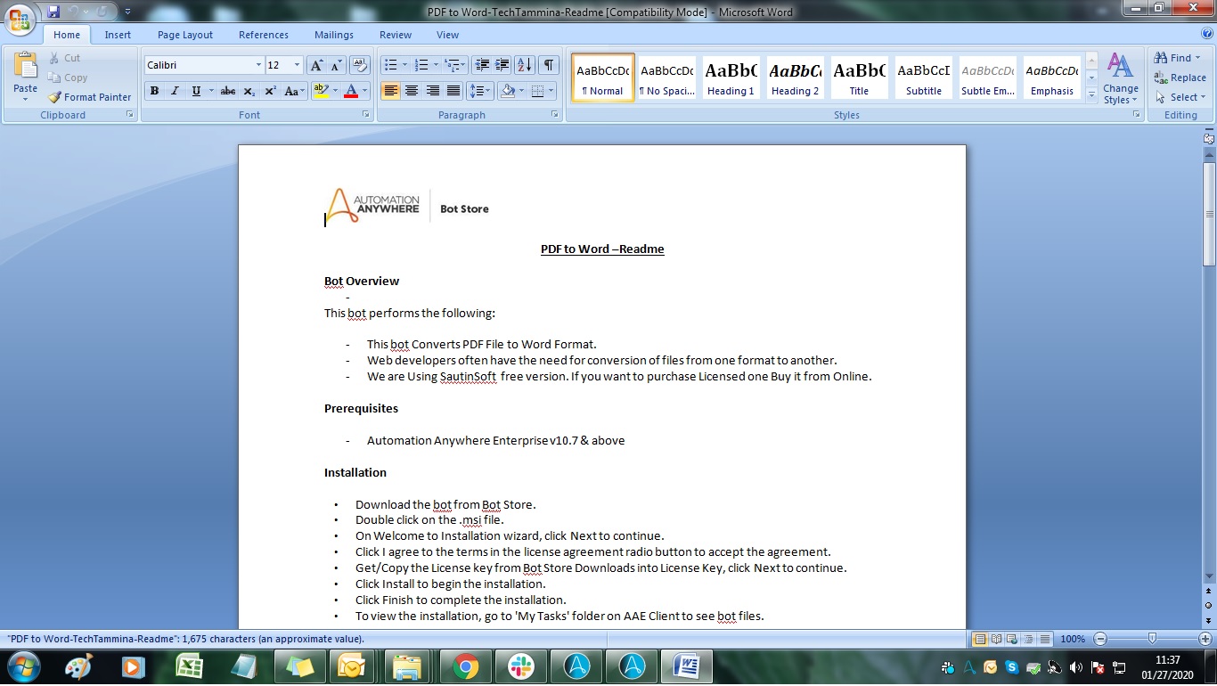 Download the Bot and follow the instructions to install it in your AAE Control Room.
