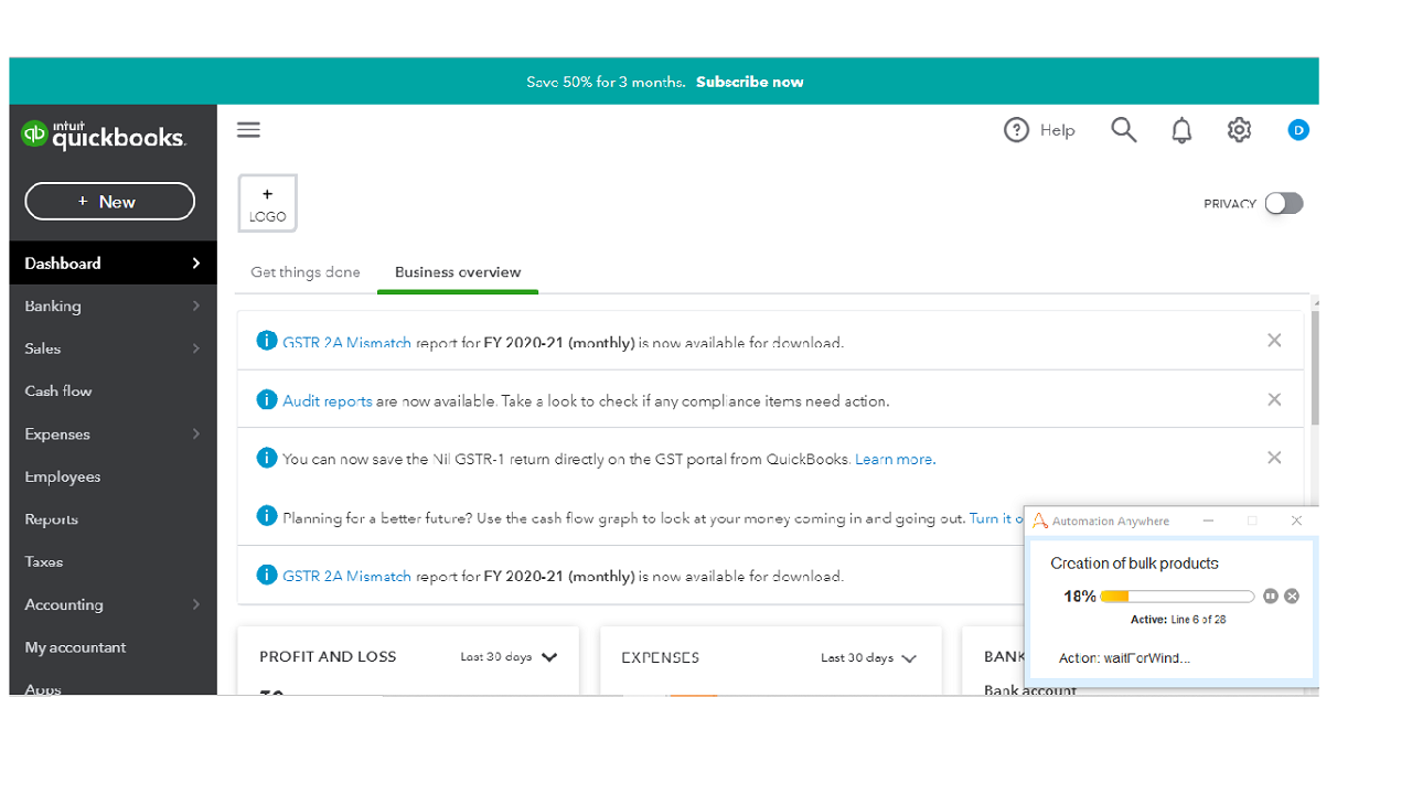 The bot, Product Creation in QuickBooks, is generally designed to automatically restock non-inventory products and services. Through the Automation Anywhere platform, it ensures users can set up products and services to keep themselves at certain stock thresholds, by eliminating manual data entry and errors that may occur.