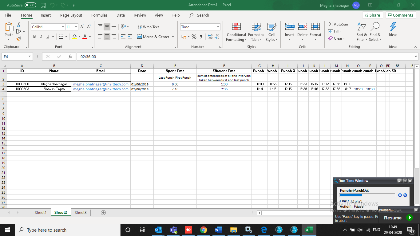 Attendance Punch-In Punch-Out Calculation Using Macros