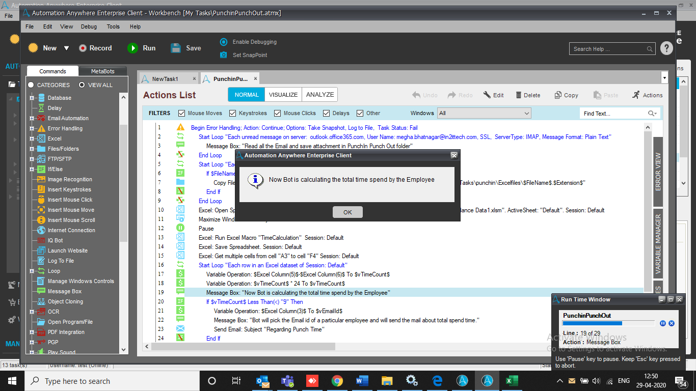 Next, Bot will open the excel file and will check the time calculation Excel macros and if it is matches, then Excel macros will run.
