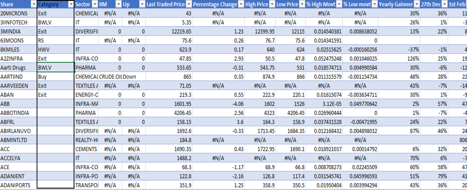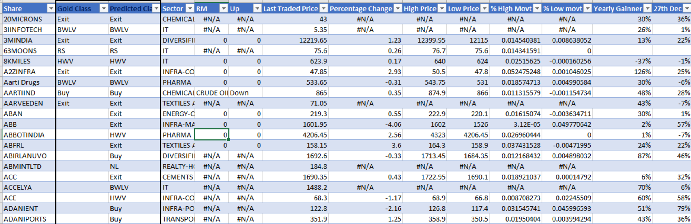 ○ Predicted_Class: This tells us the Category of the Share in which it falls