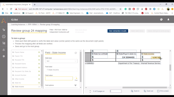 - Reads IRS form 1099 using IQ Bot