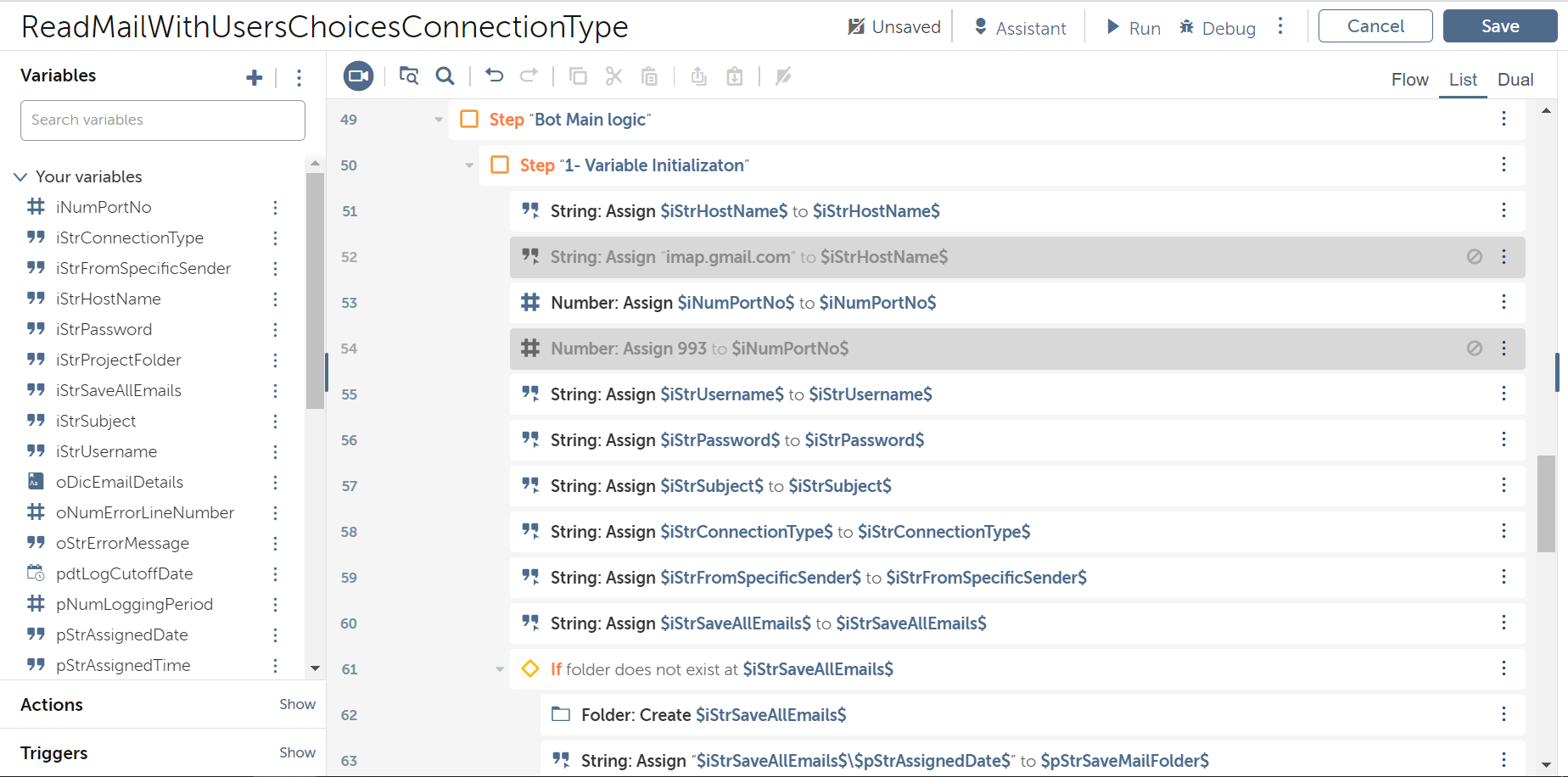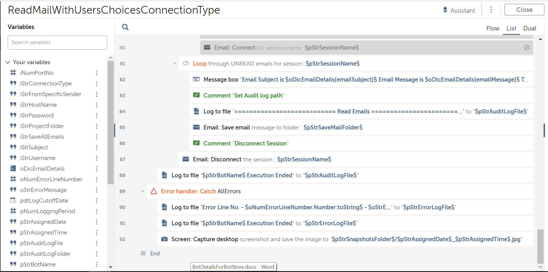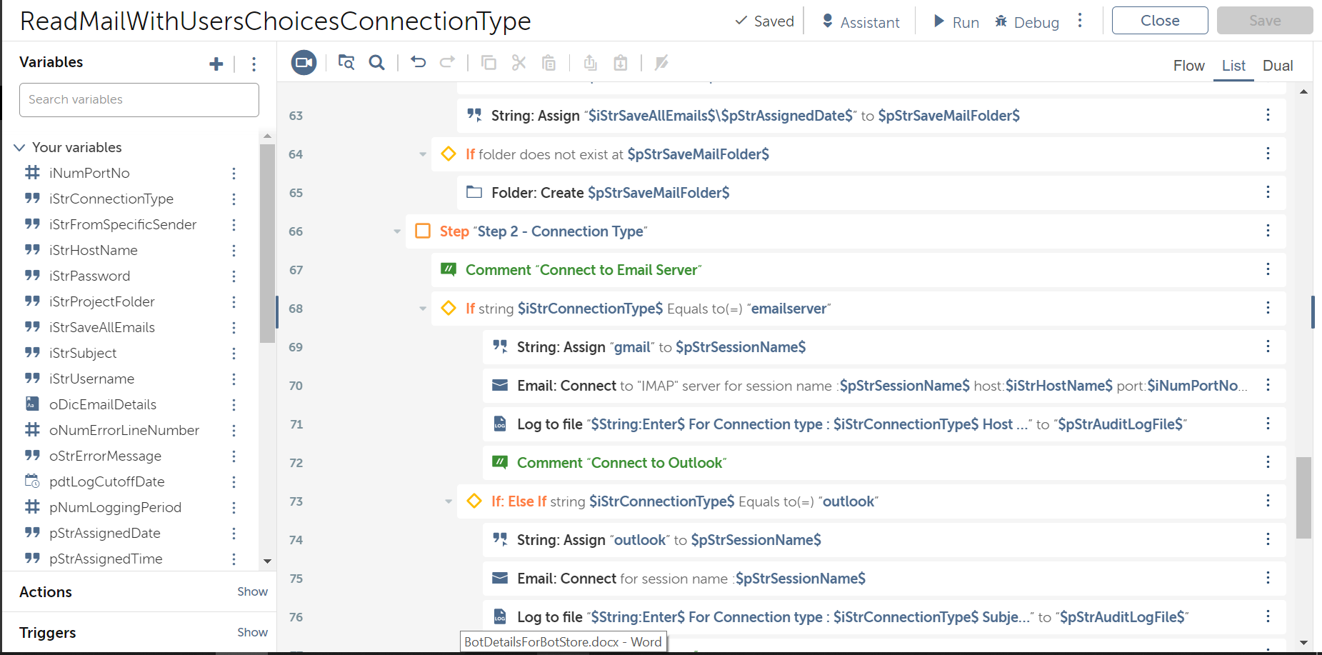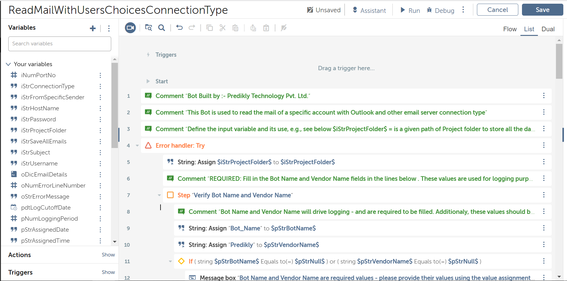 This bot will be used to read the mail as per the user's choice connection type, either Outlook or other email servers