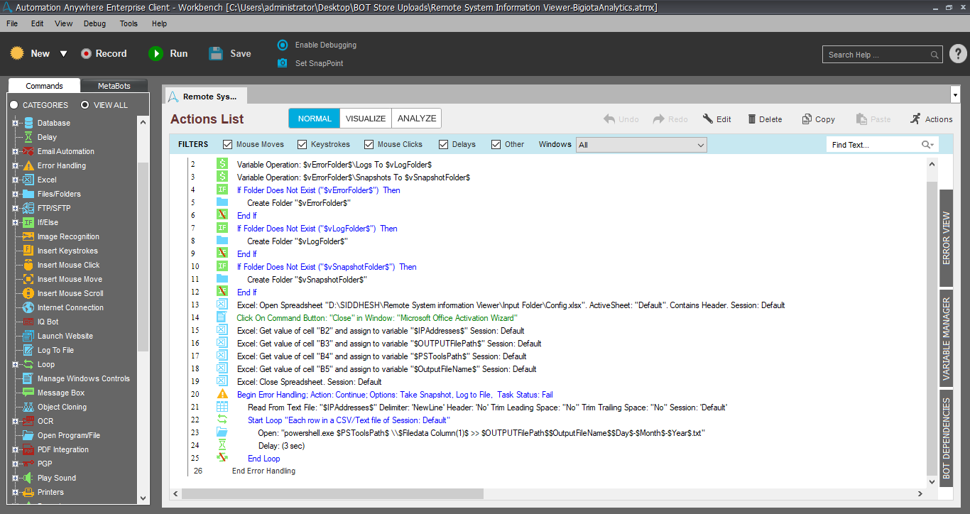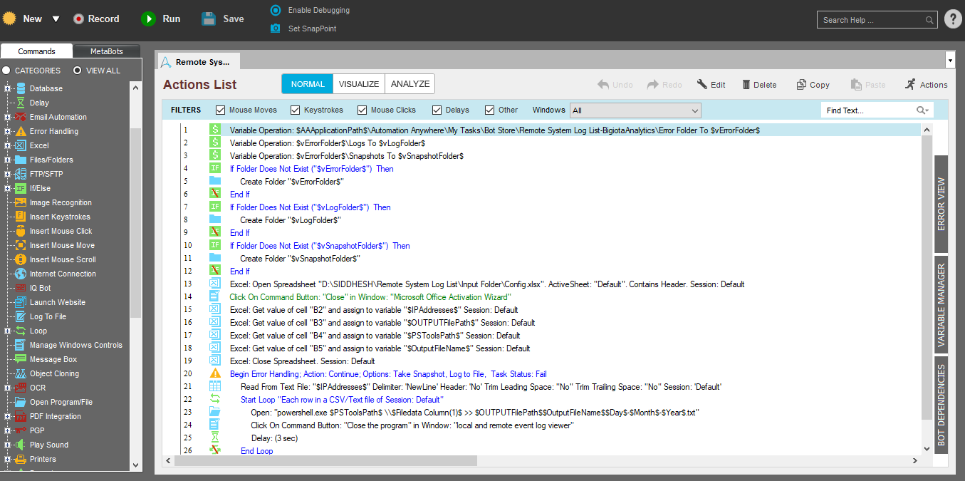 - Bot extract the system event log list from a remote system and stored the extracted data in excel or csv file. It also includes the security event logs, critical event logs.