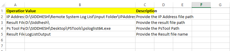 - Inputs: Specify IP addresses in the IP address text file in line by line manner Specify IP address text file path in the config file Specify PS tools path in the config file