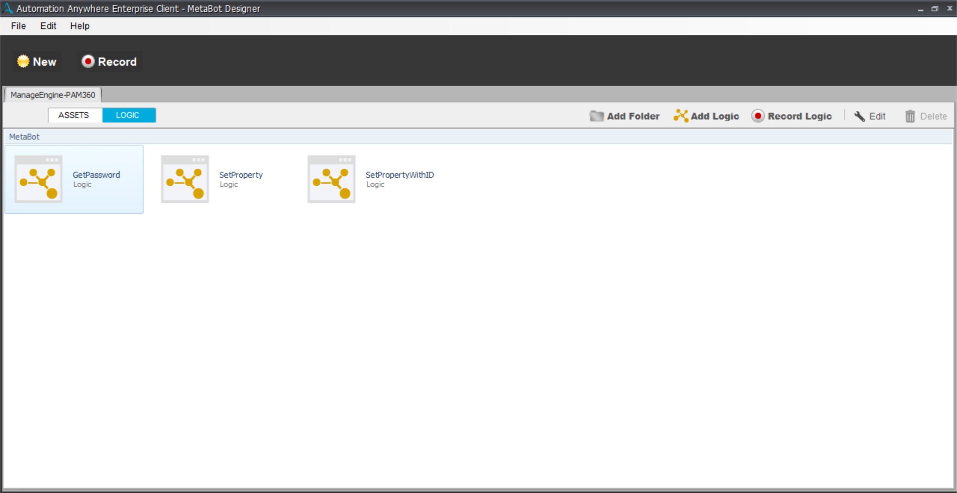 Automation Anywhere requires retrieving and using passwords for various tasks, such as connecting to a machine, application, or database during the automation process. PAM360 integrates with Automation Anywhere through bots that can fetch passwords from the PAM360 vault, to be used in their tasks.