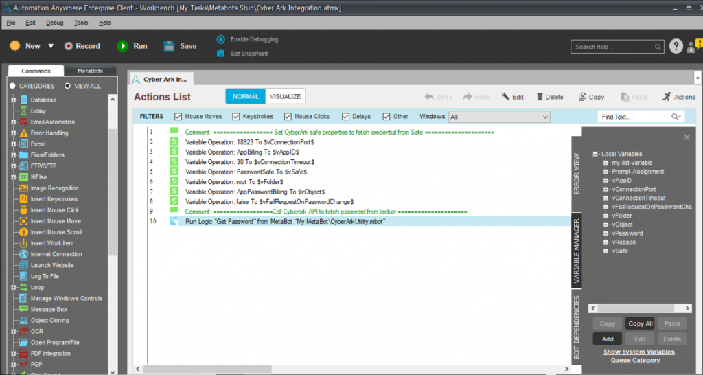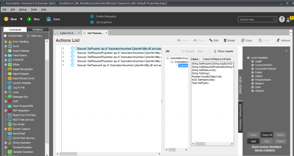 This bot is designed to enable users to automate the process of retrieving credentials from CyberArk's Credential Vault.
