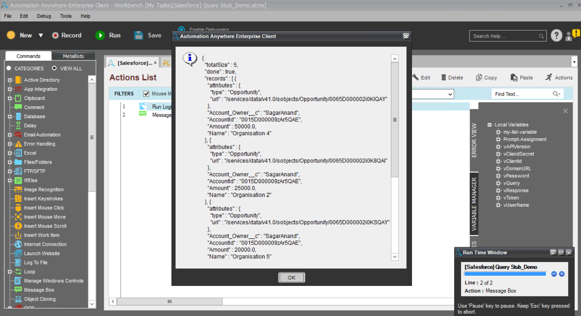 This bot is designed to automate the process of querying and returning the results of a Salesforce SOQL query.