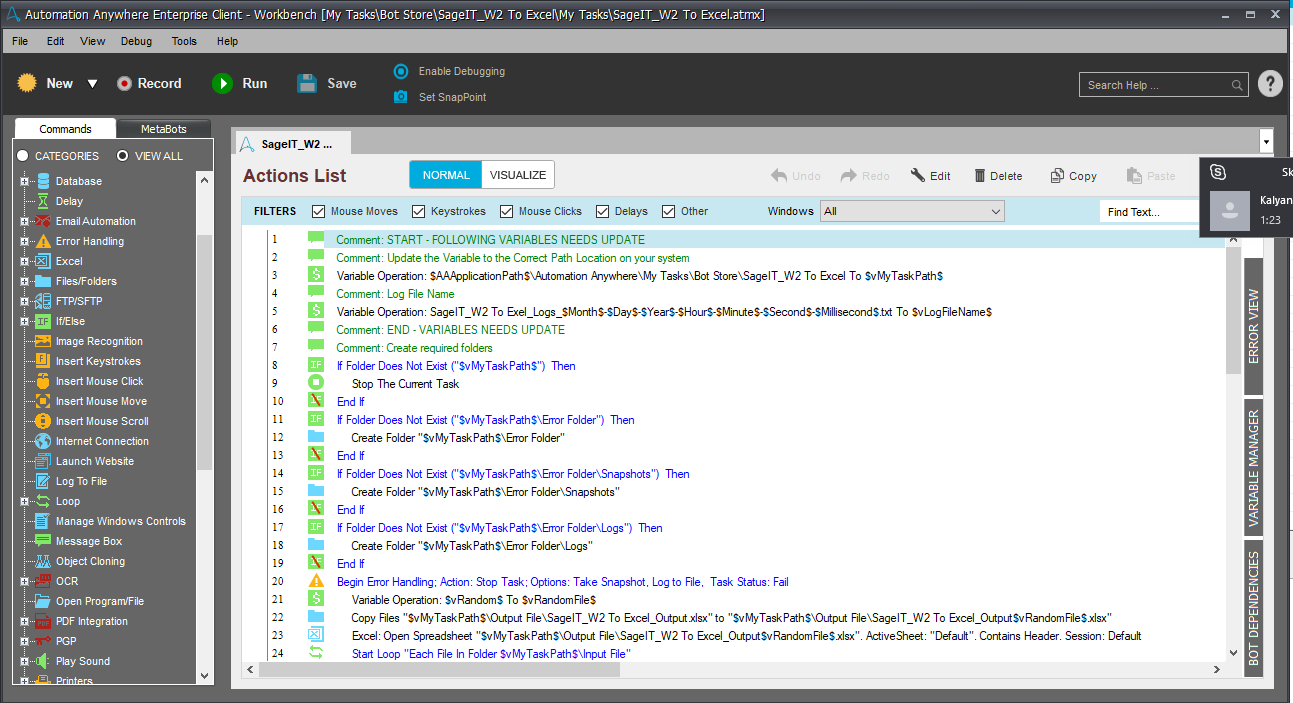- Automation Anywhere Enterprise v11.3 (https://www.automationanywhere.com)