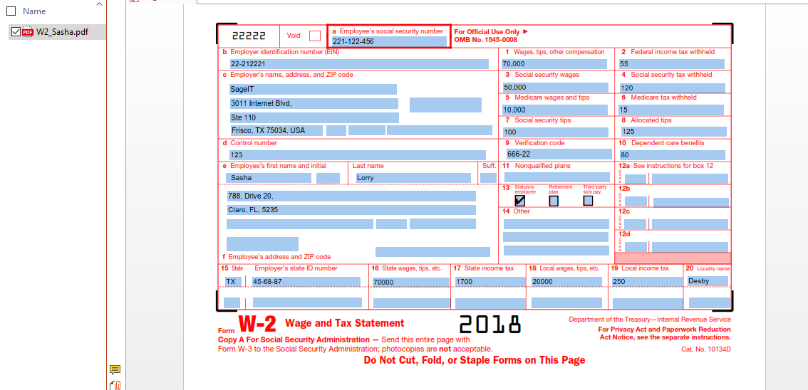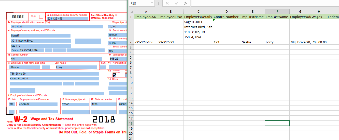 This creates a consolidated excel of all W2 Forms in a folder for further analysis by HR or other departments. This data can be sent to other applications for further processing.