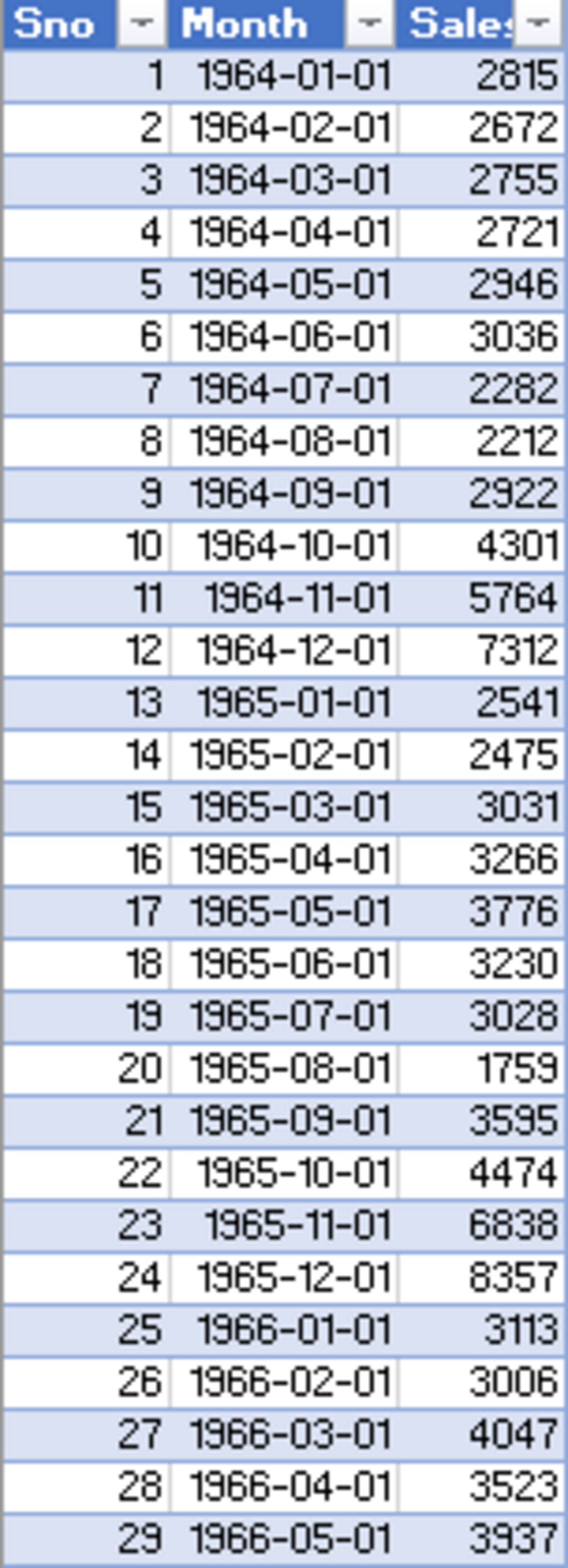 - Retail Sales data of 105 months (1964-01-01 to 1972-09-01)