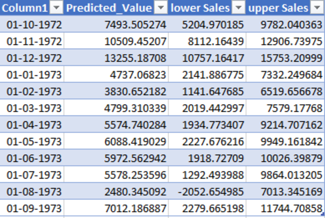 - Seasonal time series with predictions including upper and lower limits