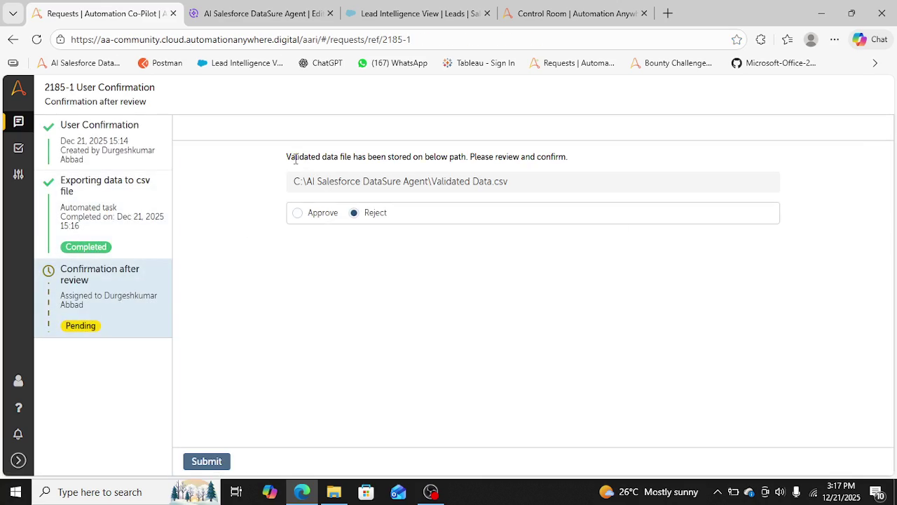 - Review validated data with Human before uploading it to Salesforce