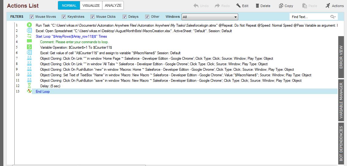 This bot will do the following function: Login into Salesforce. Read the data from Excel and create the macro for the same.