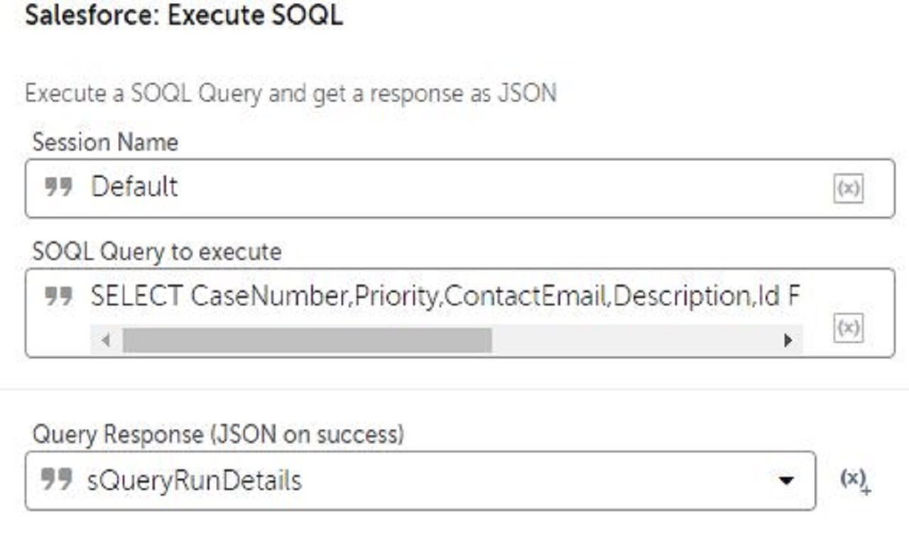 • Salesforce SOQL query execution.