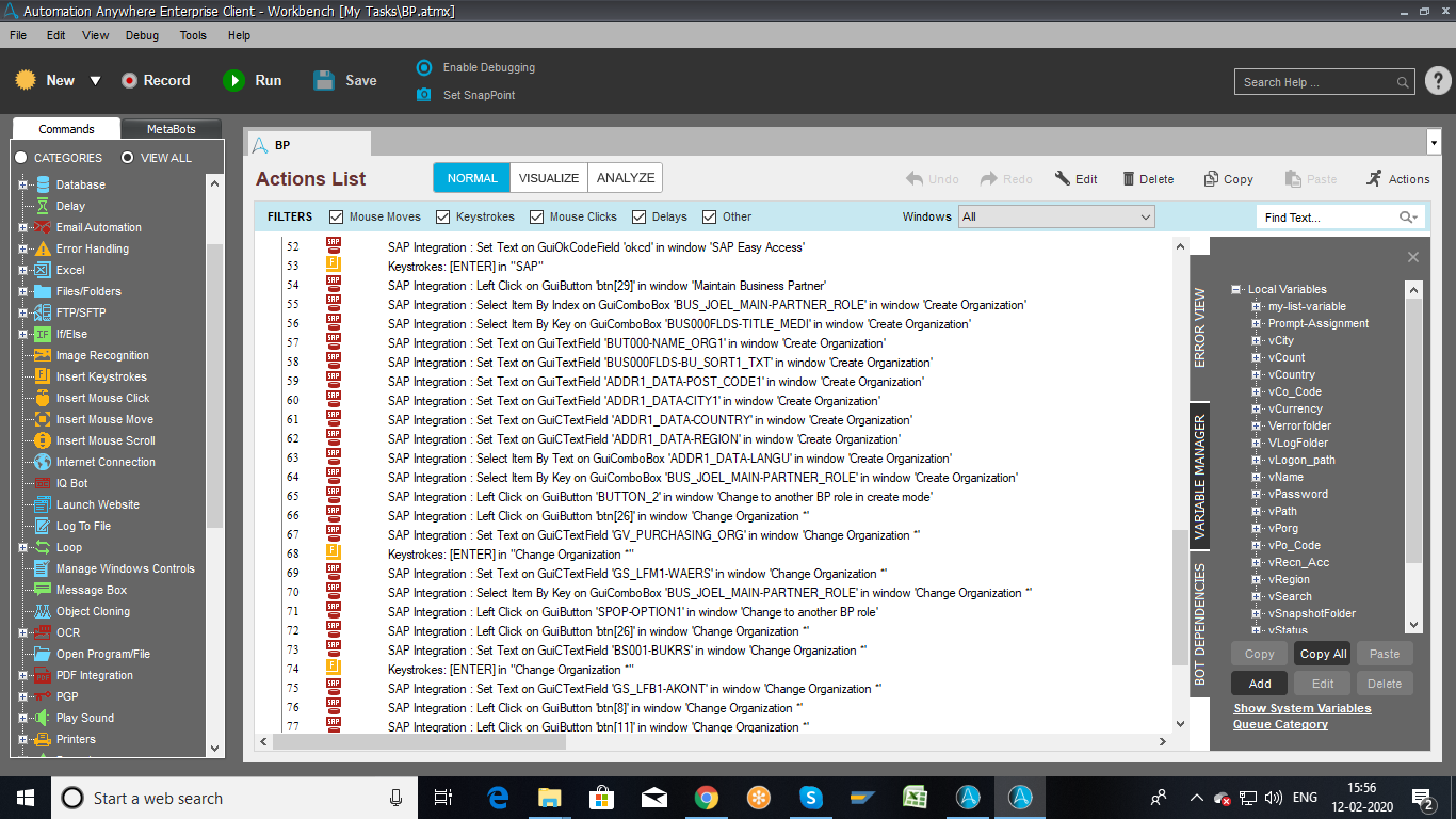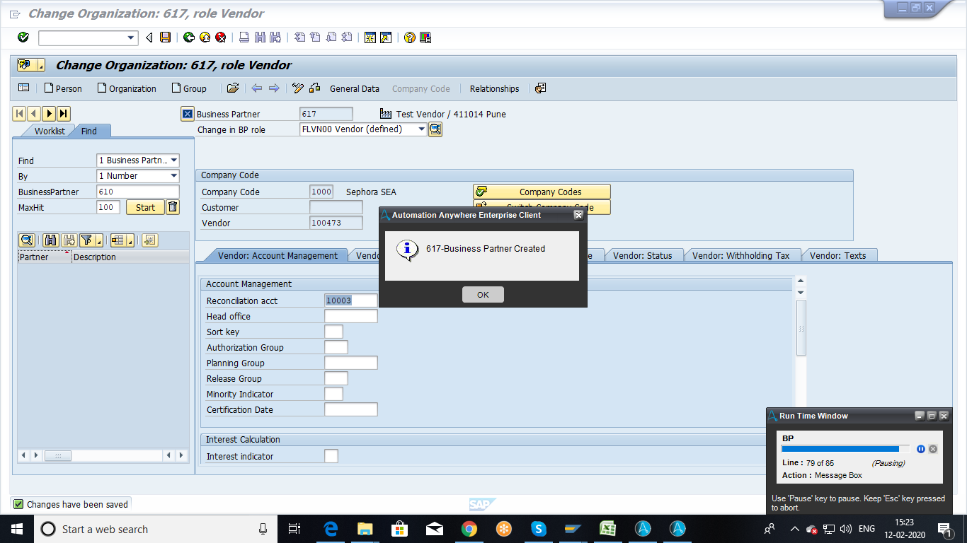 This bot automates the process of creating business partners and assigning roles to business partners in the SAP system