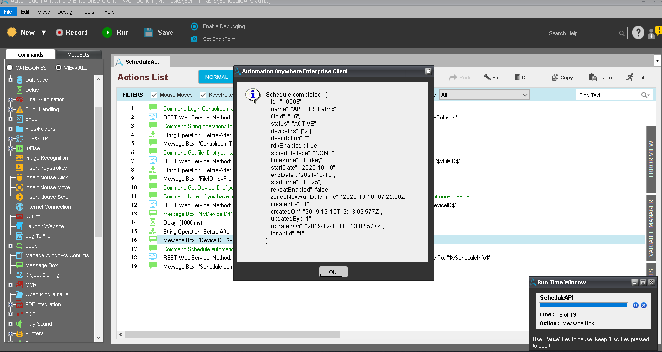 Schedule tasks with Automation Anywhere APIs without using any screen actions.