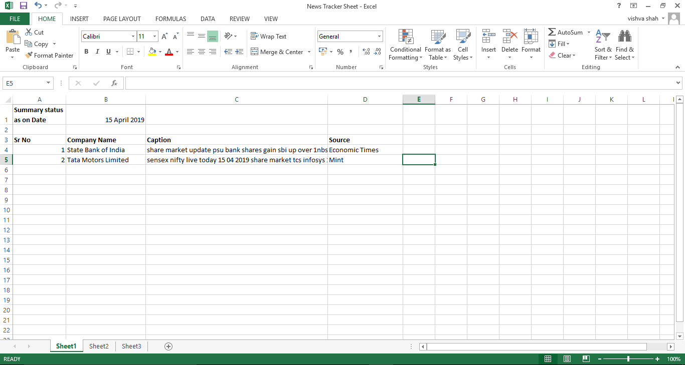 - Inputs: List of Company Names(csv), List of keywords(Excel), List of newspaper URLs(Excel), Output Sheet template(Excel)