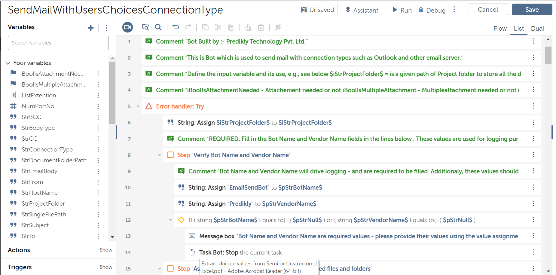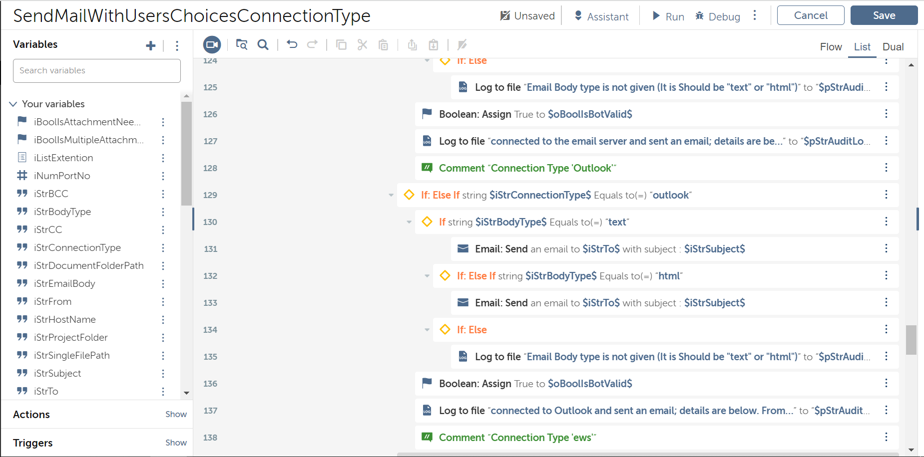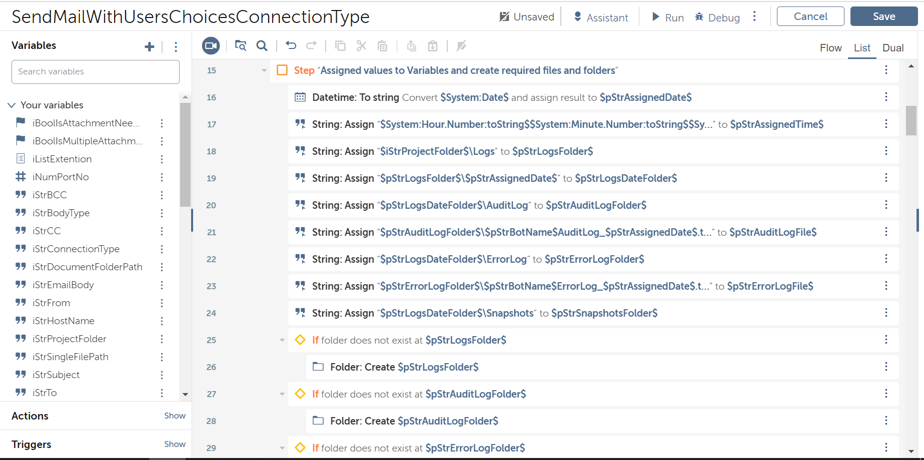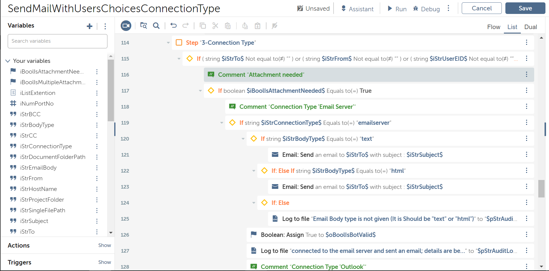 - The variables like username, password, email IDs for To/From/CC/BCC, and attachments can be configured