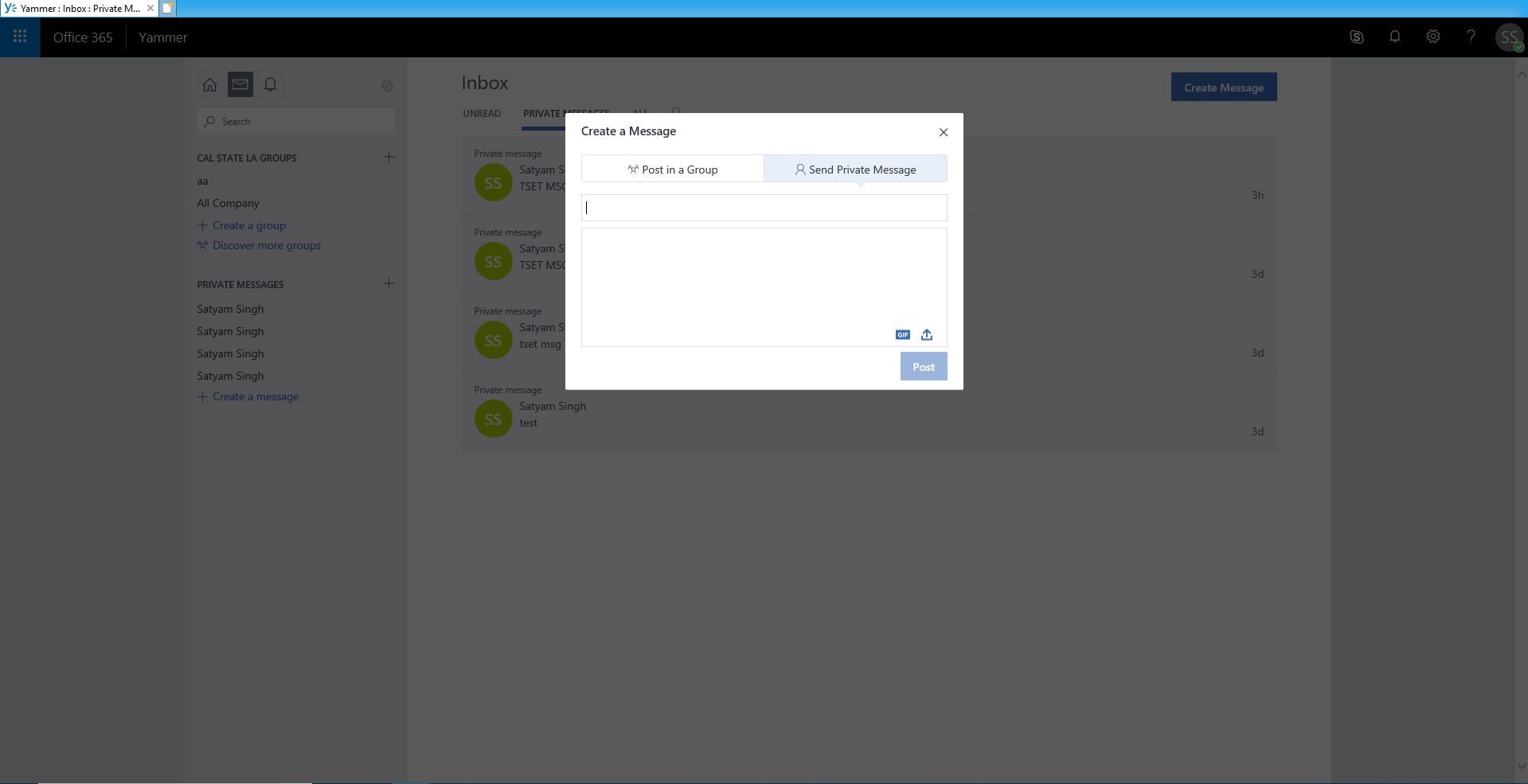 Send Private Message in Yammer
