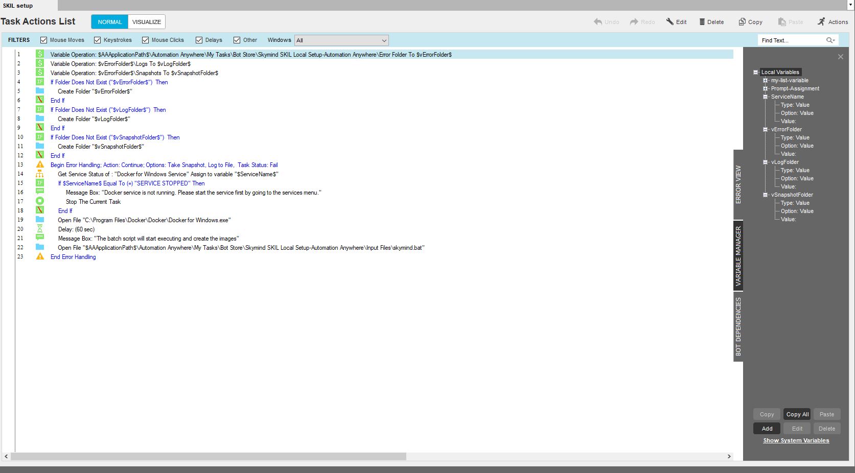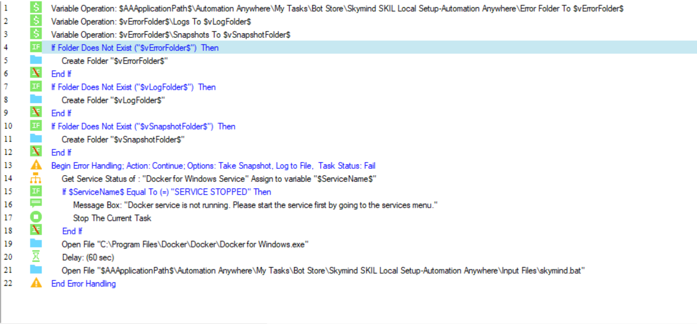 This bot starts the docker service and then downloads the docker image for SKIL software if it does not exist already. It then uses that docker image to start the SKIL on a user's local machine.
