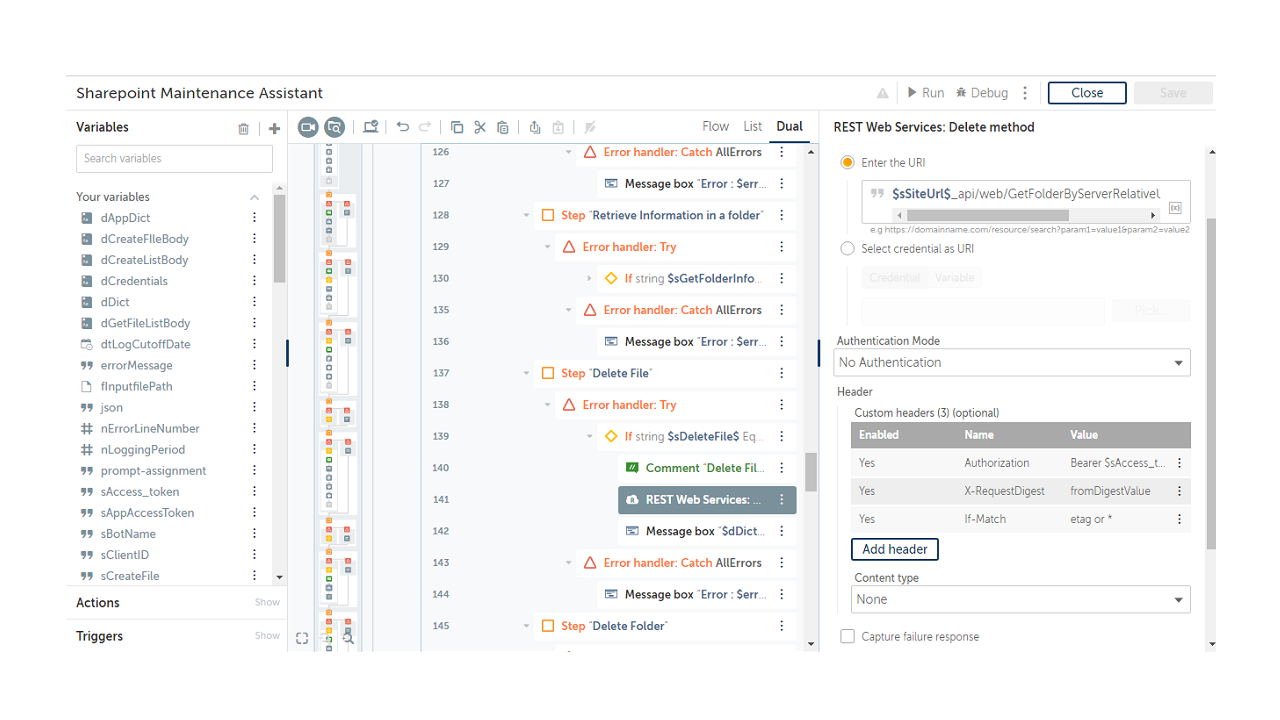 The SharePoint Maintenance Assistant performs ten operations in SharePoint. It is used to connect to SharePoint Online, which performs CRUD operations on files, folders, lists, and sites using the Rest web services command package and Microsoft graph API using the SharePoint Online client ID, client secret key, and tenant id.