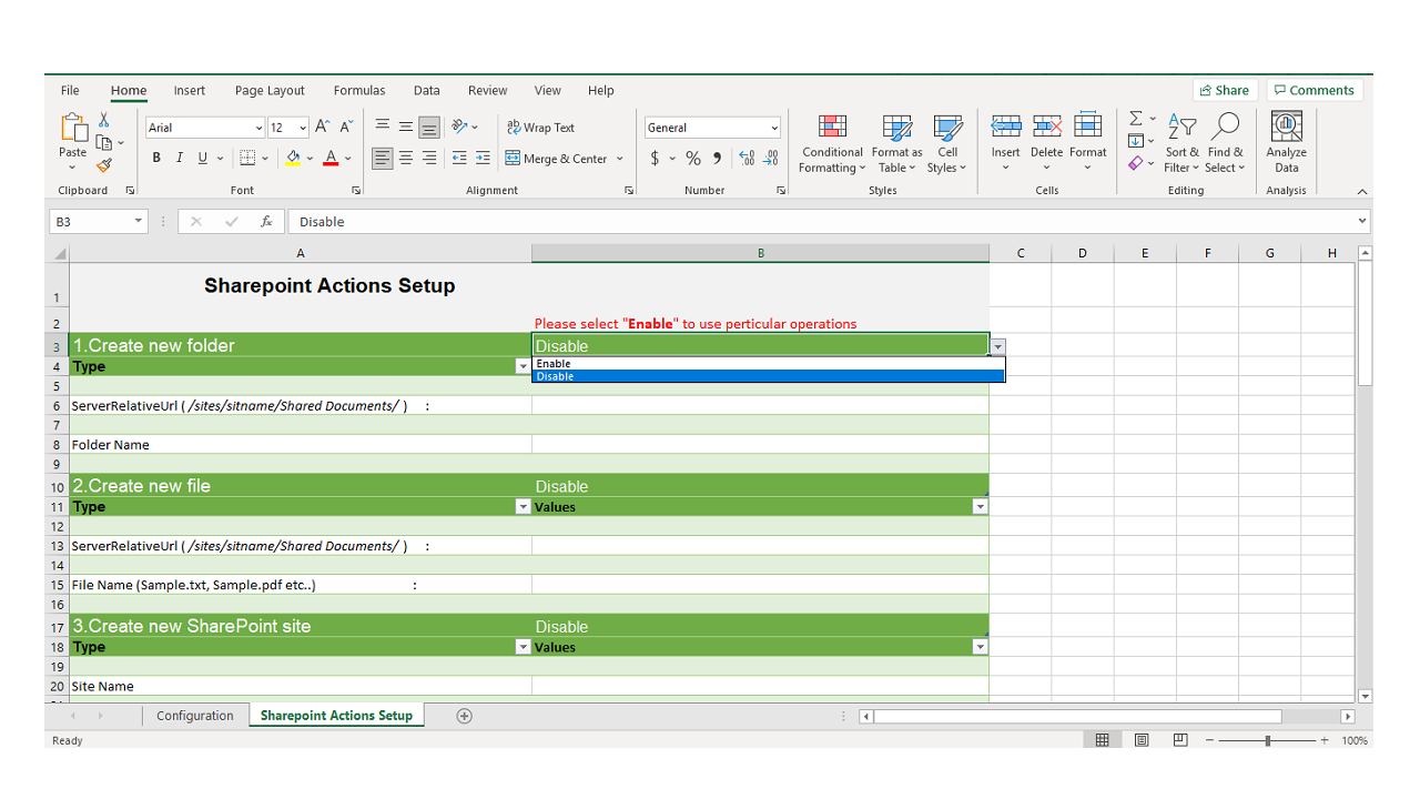 - Folder structure and configure SharePoint Operation.xlsx in line number (5)