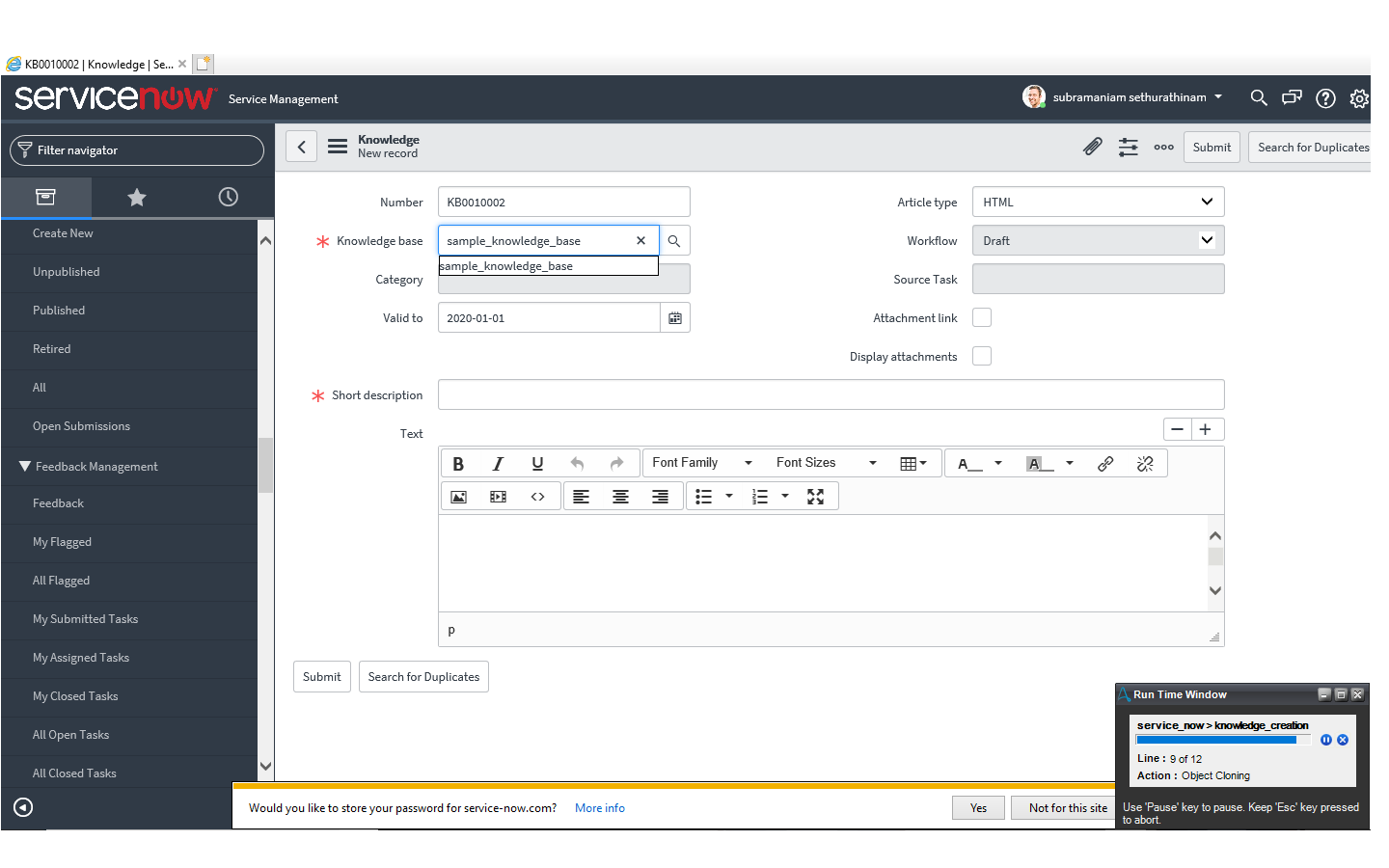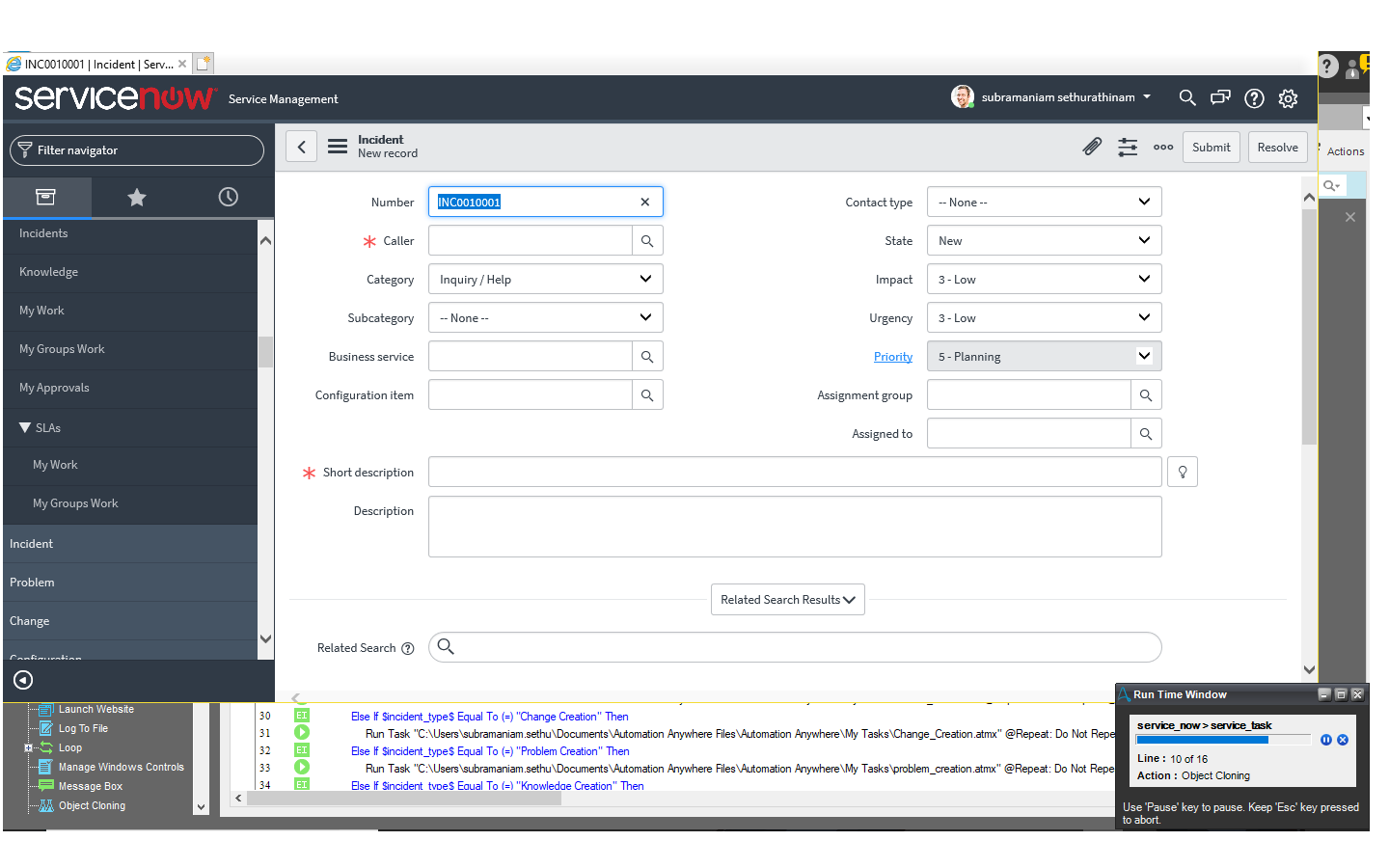Bot will read the common mail box email and understands what type of ticket to be created. The list of features are 1) The bot has a capability to create various Incidents (P1, P2, P3 and P4). 2) The bot has a capability to create Problem Management tickets. 3) The bot has a feature to create KEDB tickets 4) The bot has a feature to create Change request 5) The bot has a feature of changing status of incident which is Open from Work in progress, From WIP to Pending, from Wip to close..etc