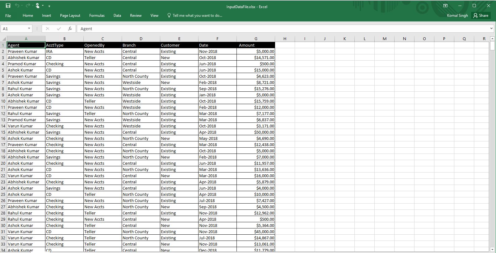 The bot extracts data from an input file and with the help of a macro file, creates sheets and fills the data according to the agent in each sheet