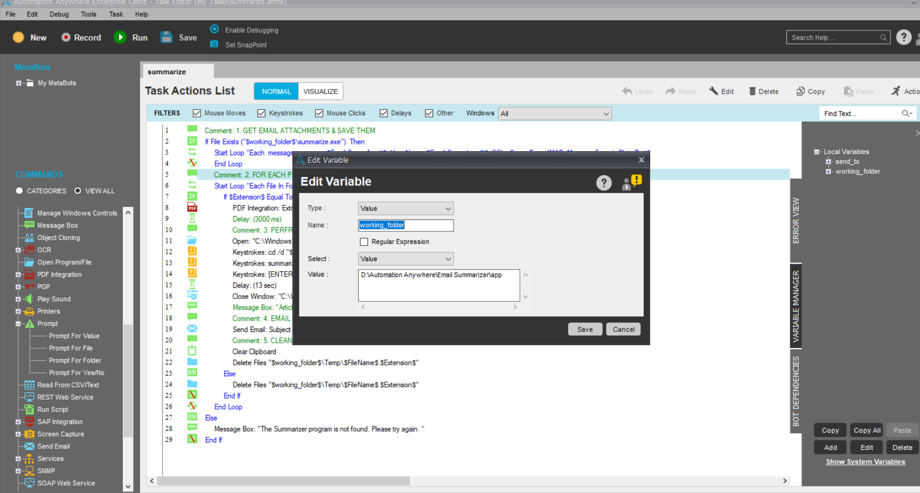 - Inputs: Send_to working_folder, vErrorFolder, vLogFolder, vSnapshotFolder