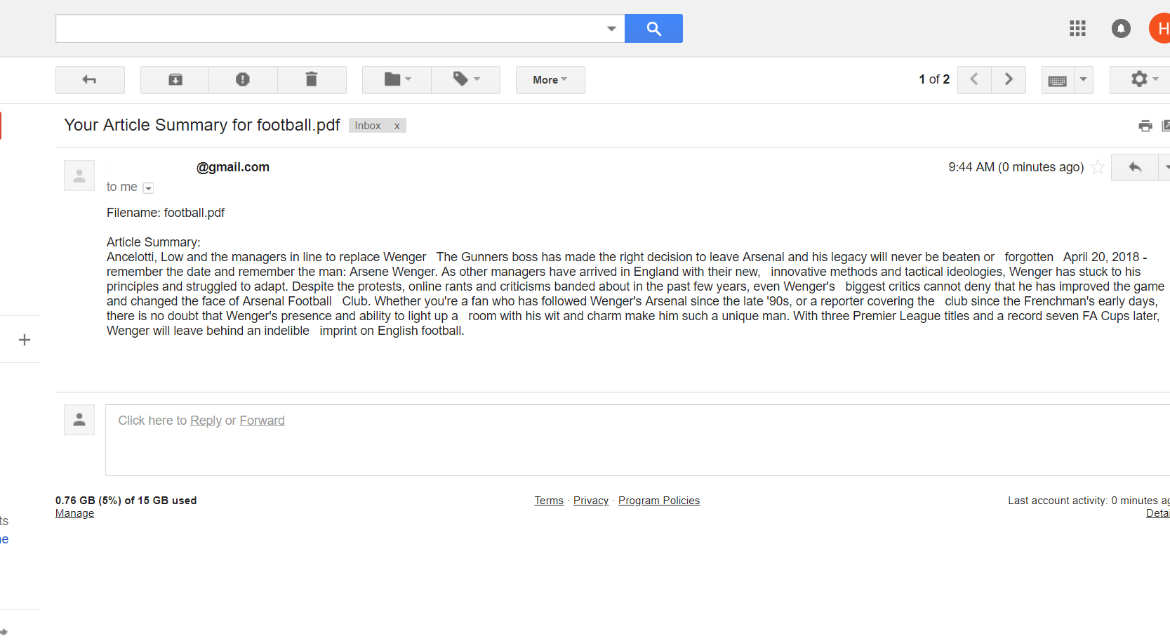 Download PDF attachments from emails, extract the main information, and send a summary back to the user in question.