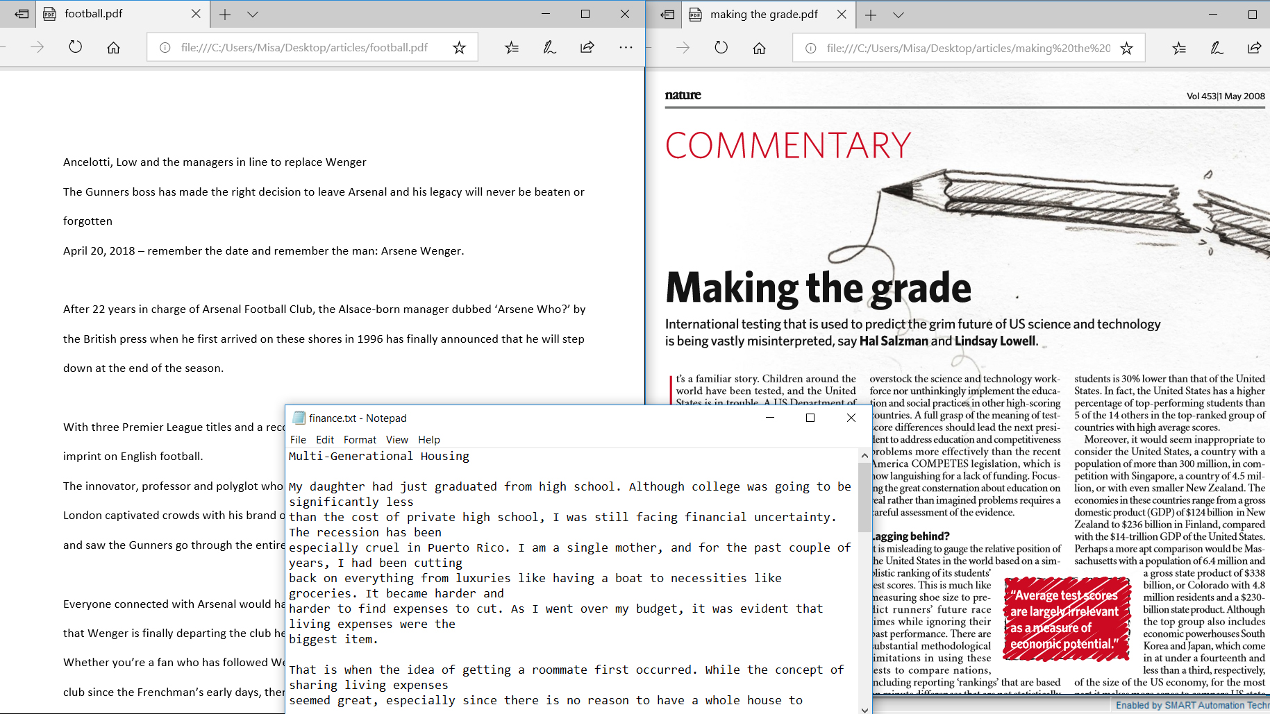 Output: Main concepts and summaries of articles in .TXT format.