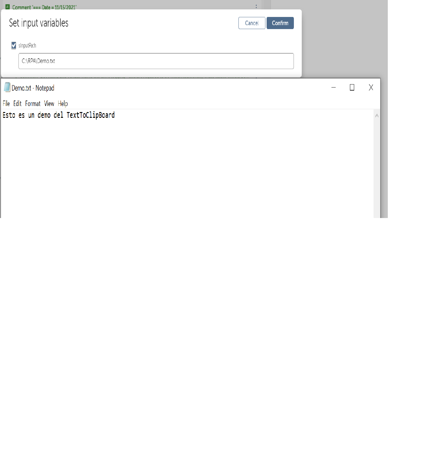 This bot, Text to Clipboard, is designed to read a .txt file and save the content into the clipboard. It saves time in bot development. It helps to copy the content of a text file into a field in any use case that you have to enter the all content of the Text file.