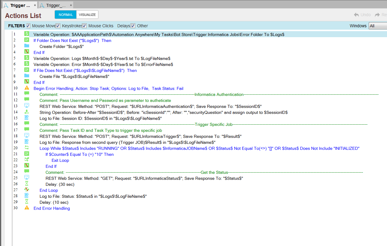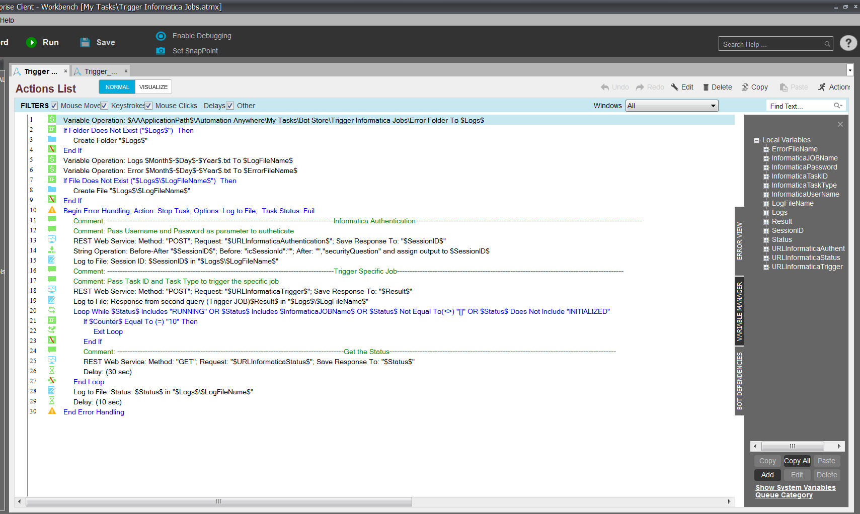 This bot triggers a specific Informatica job and provides the status of the triggered Job.
