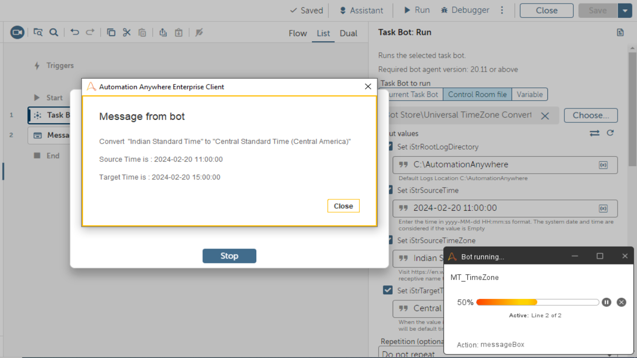 - Upon running the automation, it will give the converted time zone that can be used for further processing