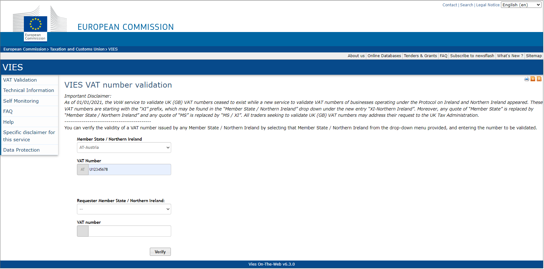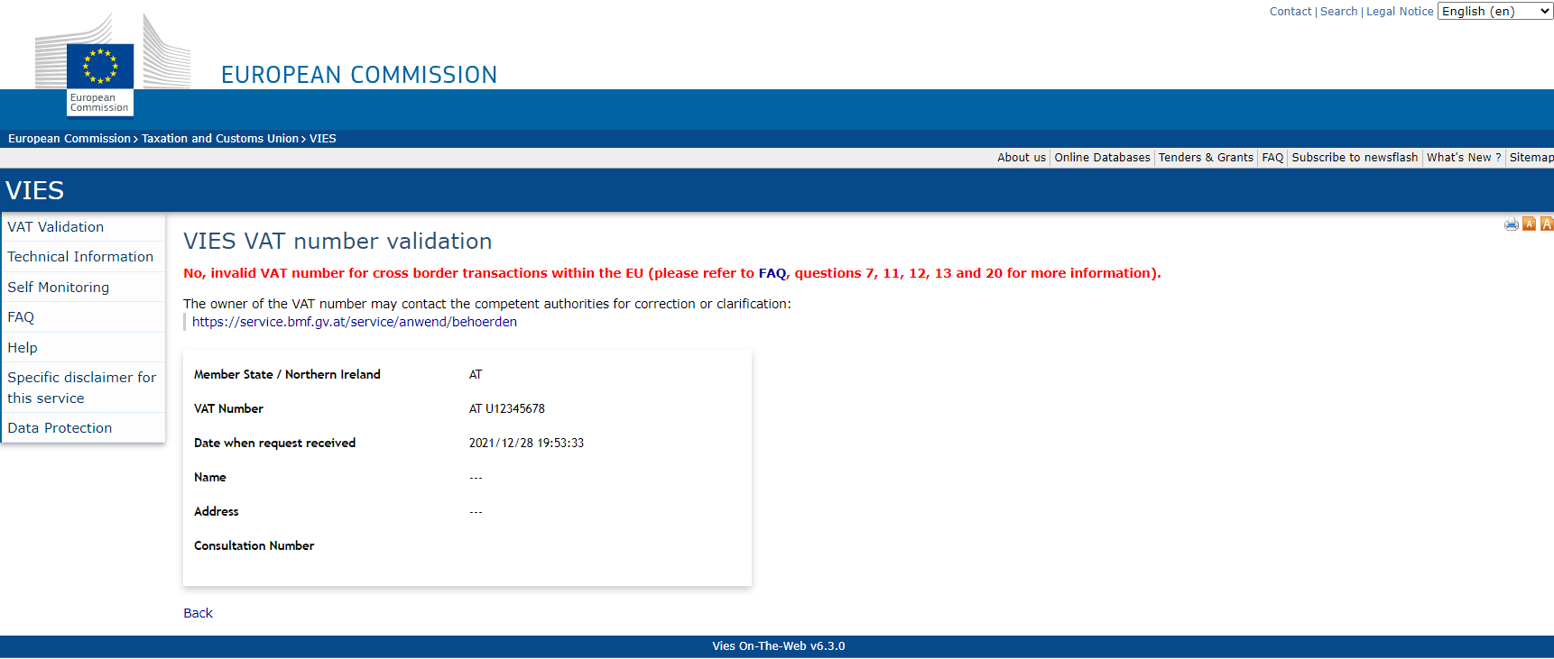 - Input a csv file with VAT numbers to be checked. Number should start with country code