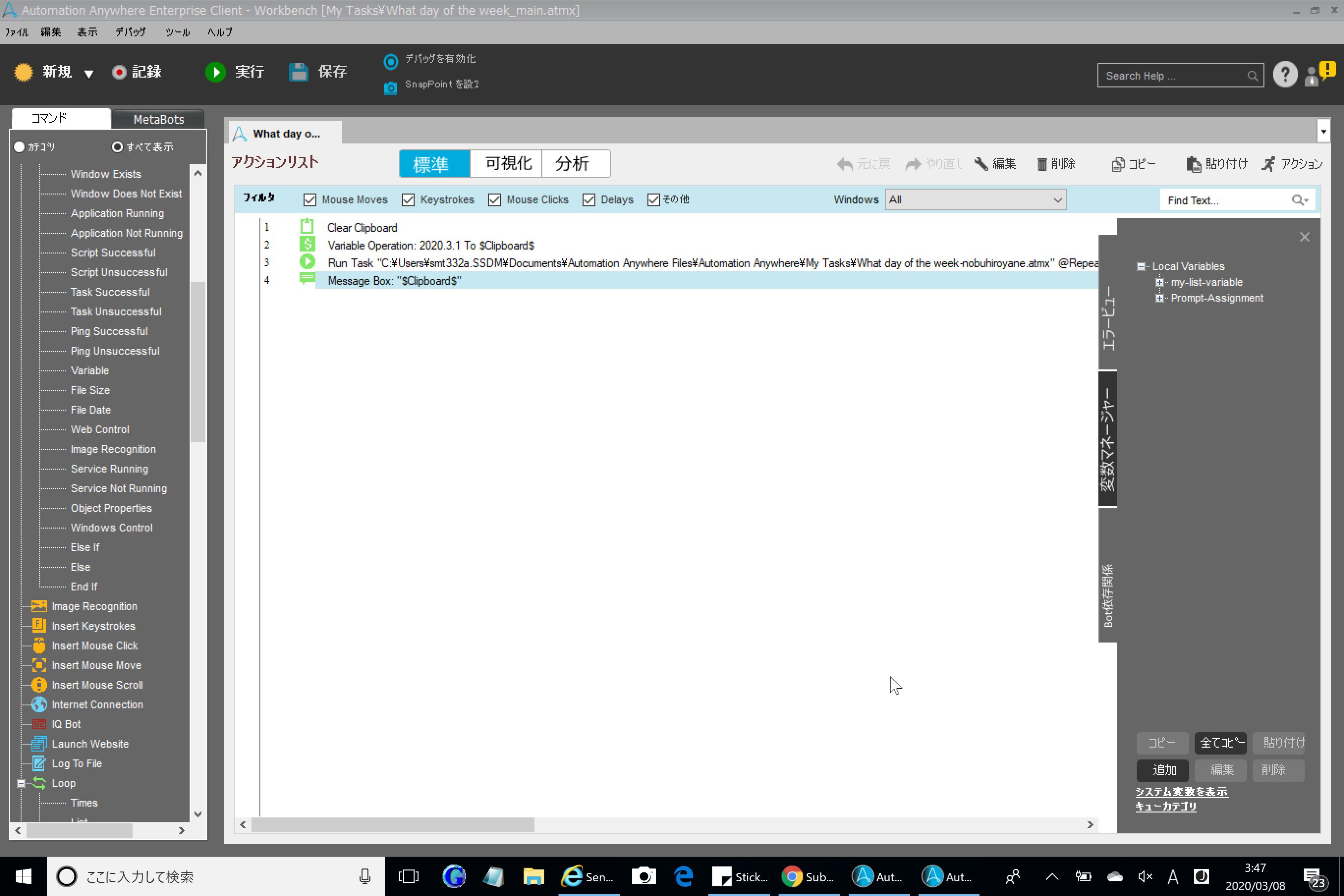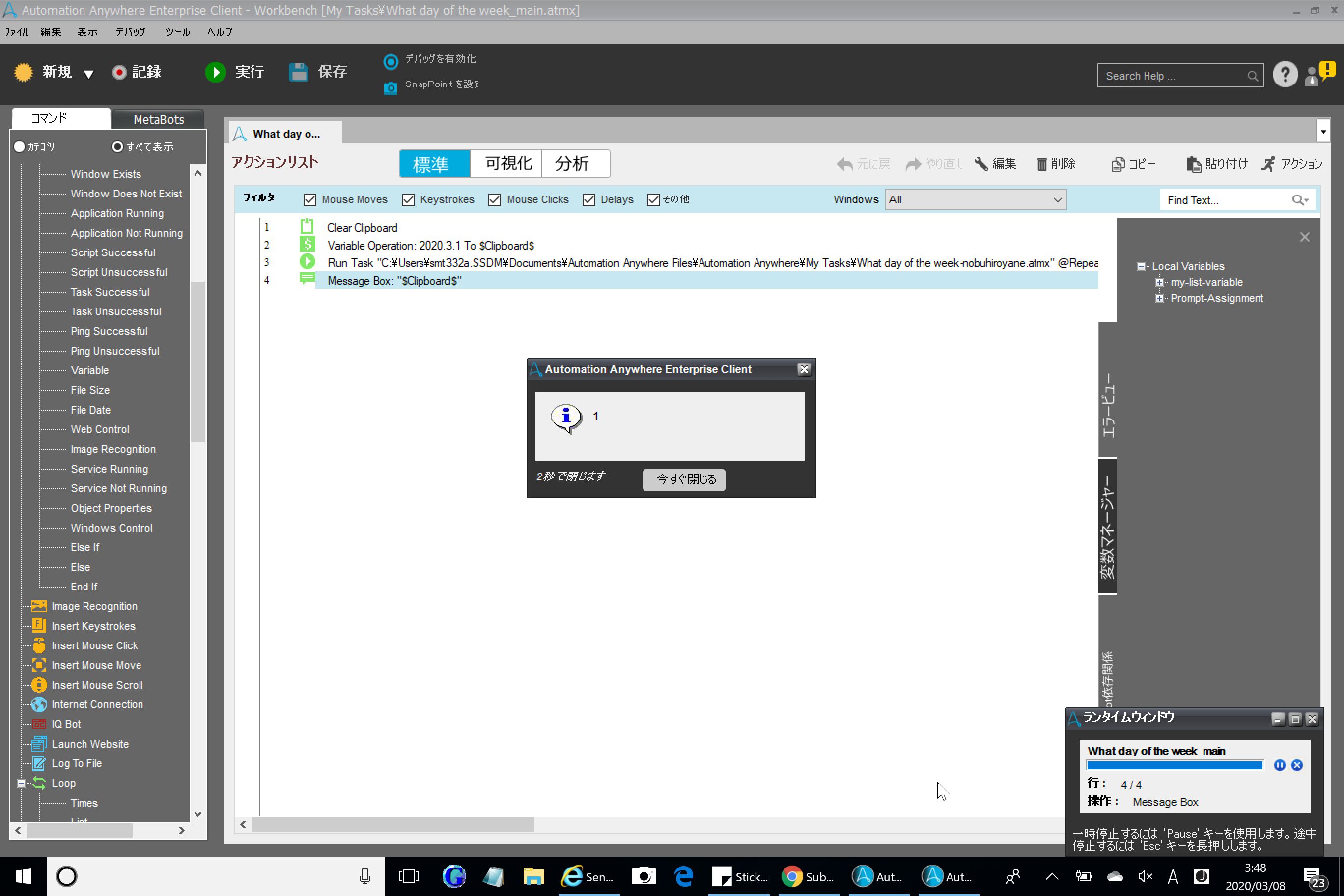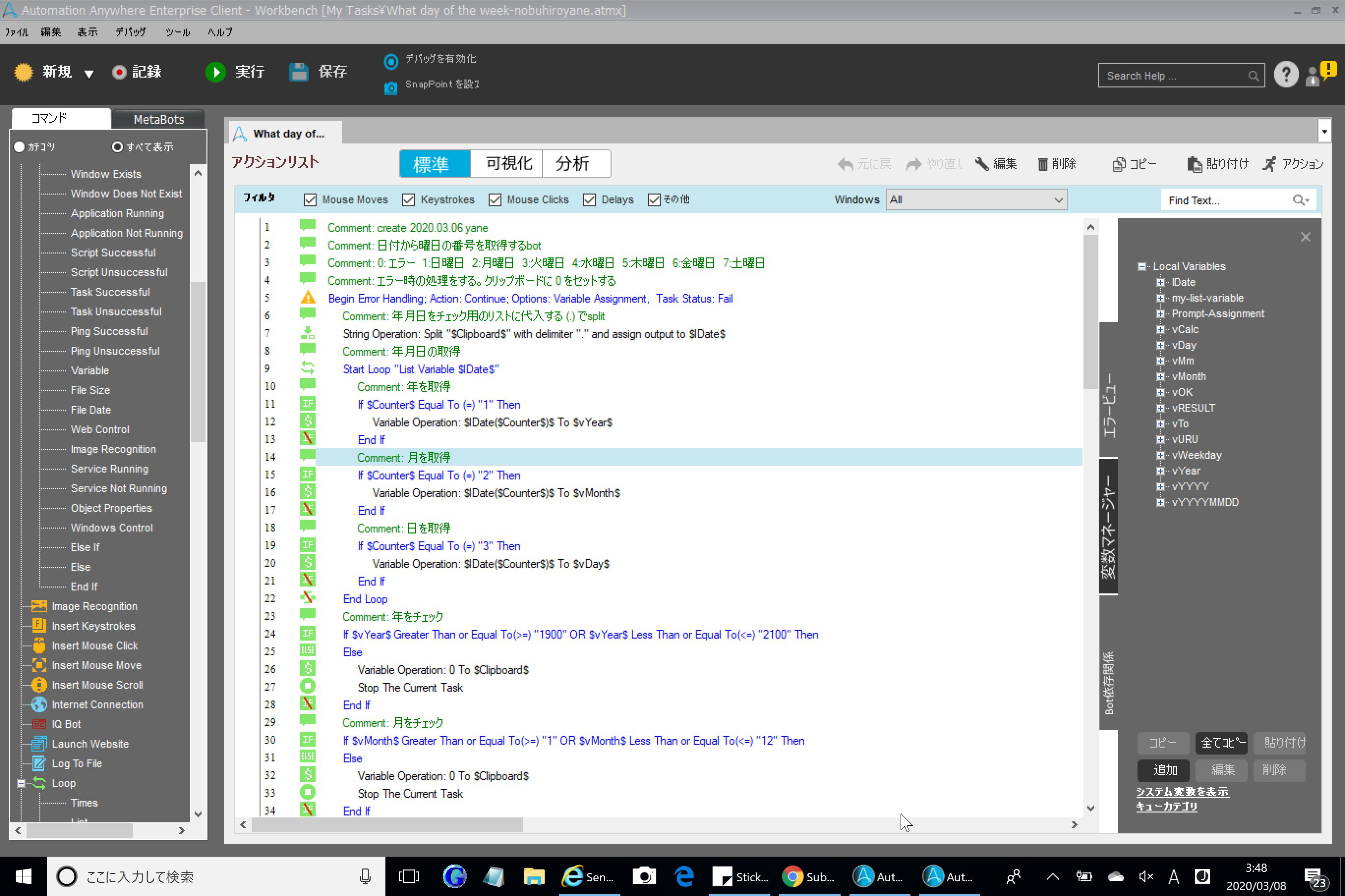 (1) It is effective to use when judging processing by day of the week as Automation Anywhere Enterprise V11.x does not have a function for calculating the day of the week from a date.