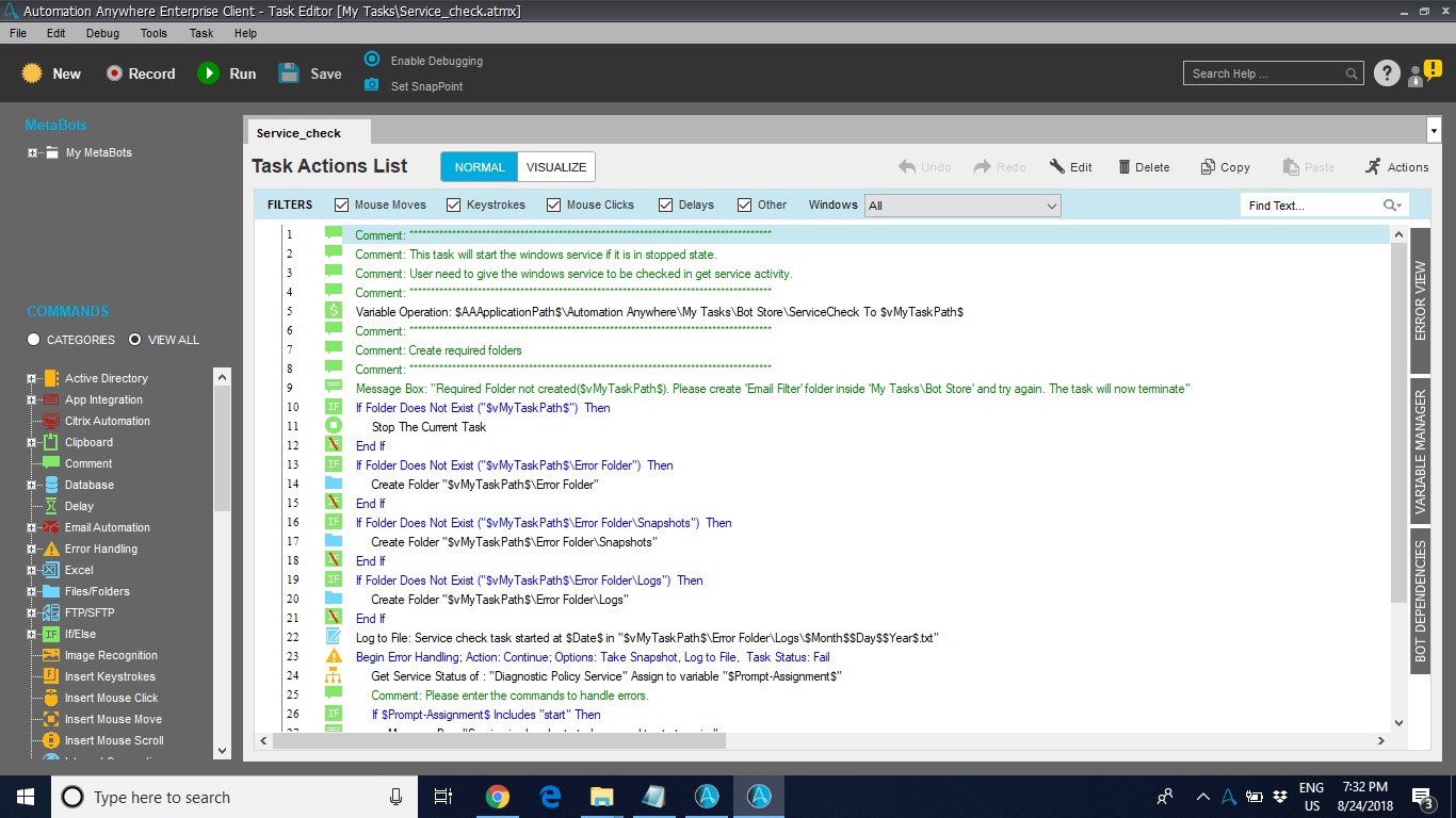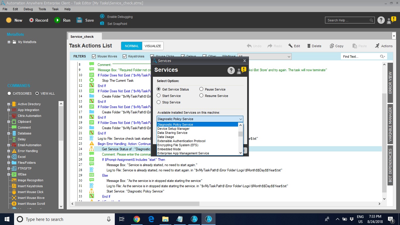 The bot will check the status of the Windows service. If the service is stopped, the bot will start the service.