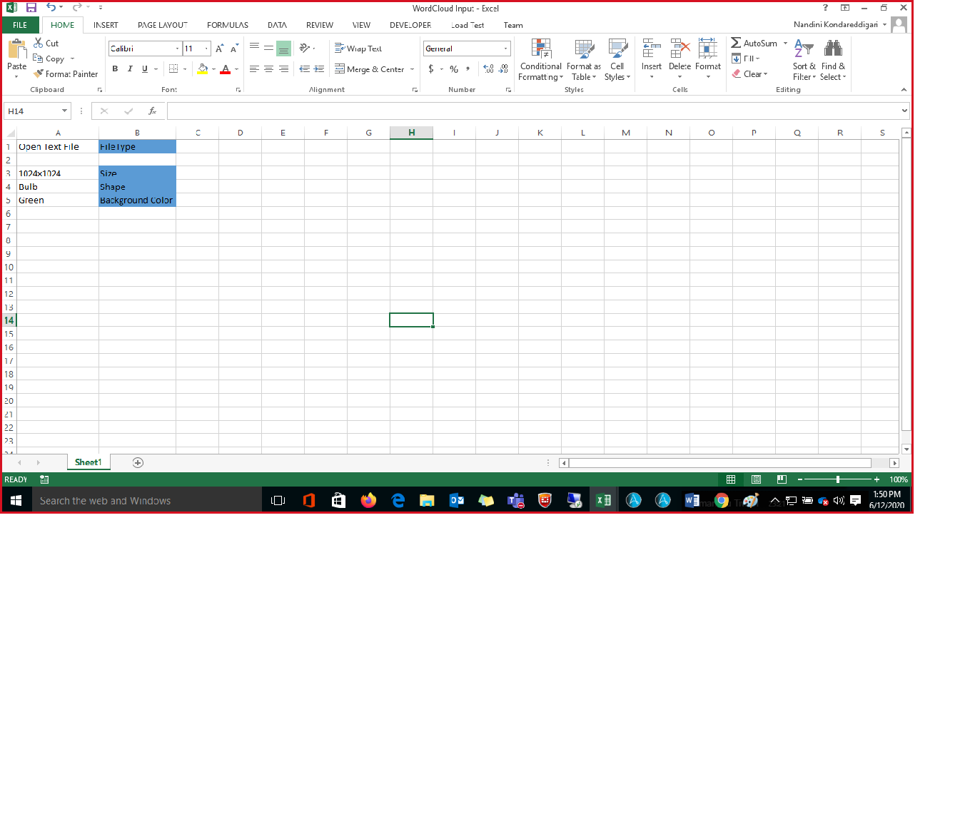 To create an advanced word cloud, the user needs to input the details in an Excel file where they have list options for the word cloud generation: