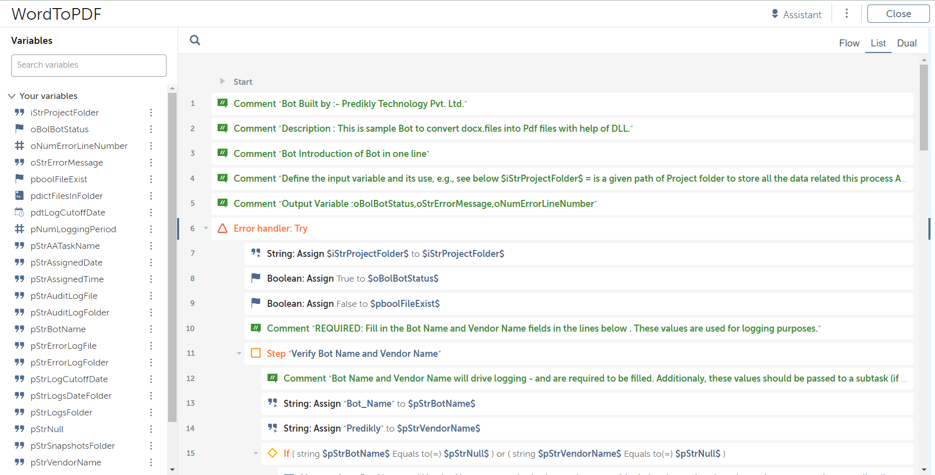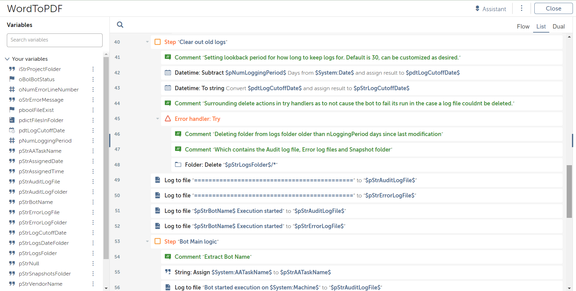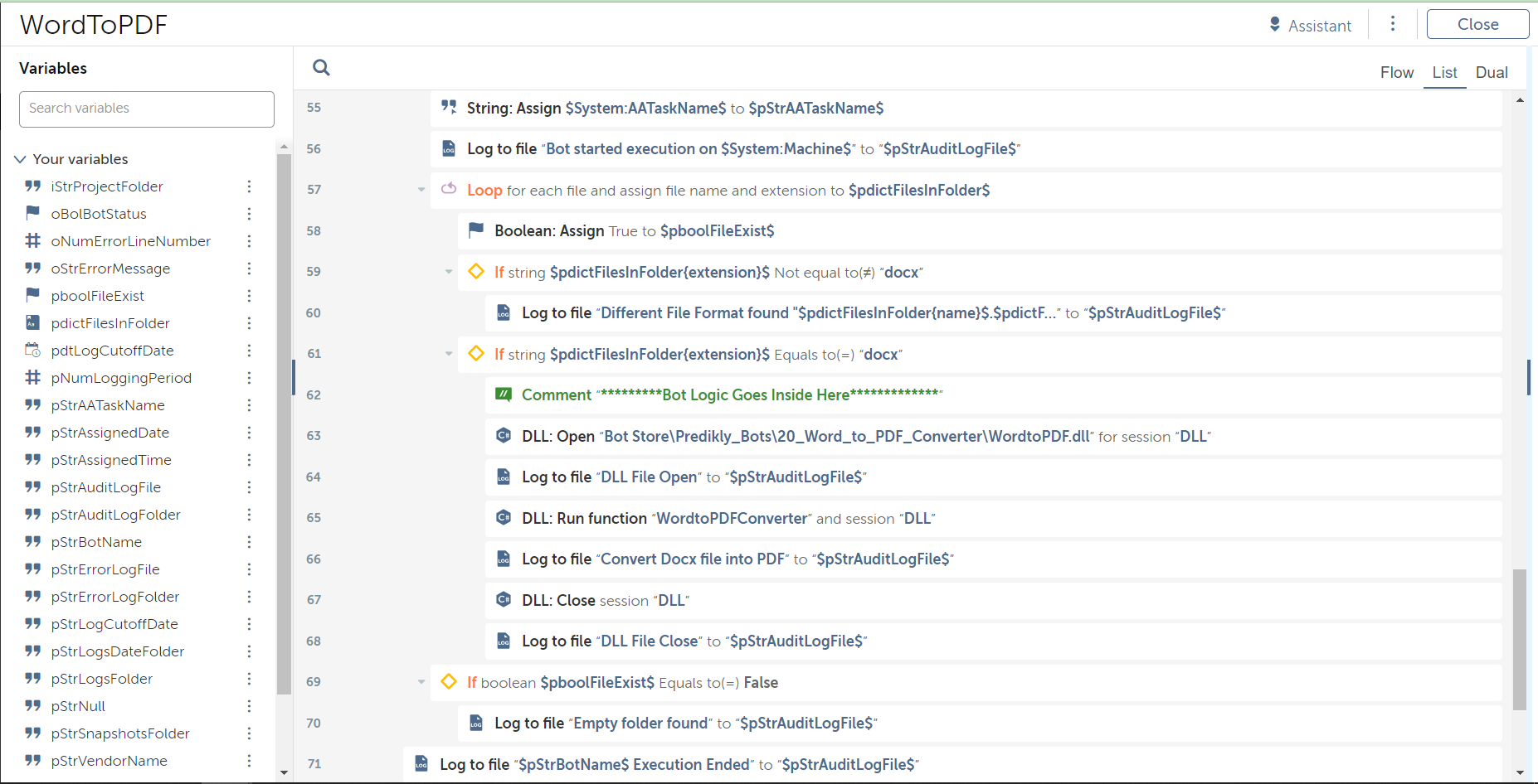 The bot will be used to convert a Word document to PDF.