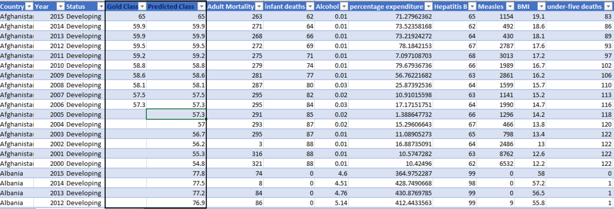 Ex: The required output predicts the life expectancy of the person using the XGBoost model baes on below class: