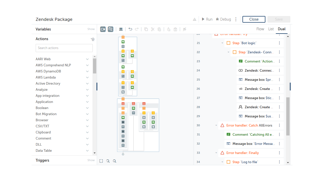 1. Connect - For authenticating the user. Reads Zendesk url, email id and password from user. User can give custom session name, by 'Default'. Session name should be same for a whole single session. User can also add multiple sessions within a single bot. Returns the result of the authentication in a string variable.