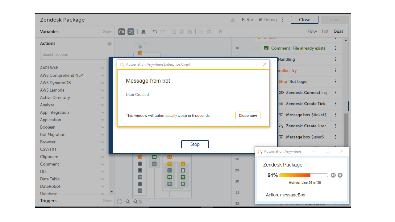 2. Create User - For creating user in the Zendesk account. Reading name, email, role (end-user, admin and agent) from the user Use the same session name as used in the respected connect action. Returns the result of the action in a string variable.
